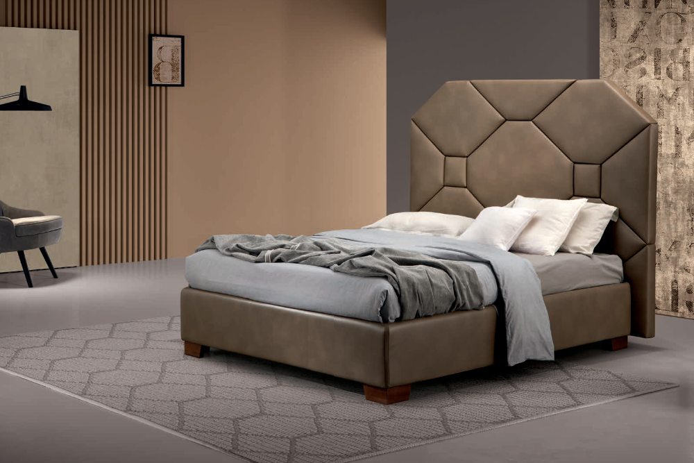 Volumi importanti che esaltano i geometrici pannelli imbottiti: un connubio di stile e classicità.